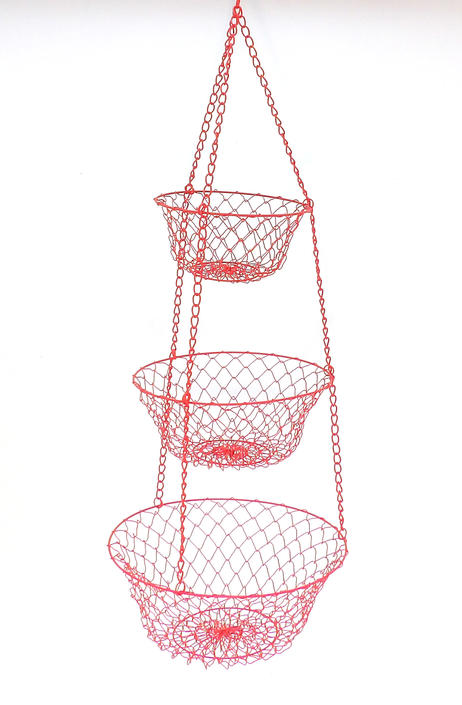 Vintage Hanging Fruit Basket Red Metal 3tier By Carouselandfolk