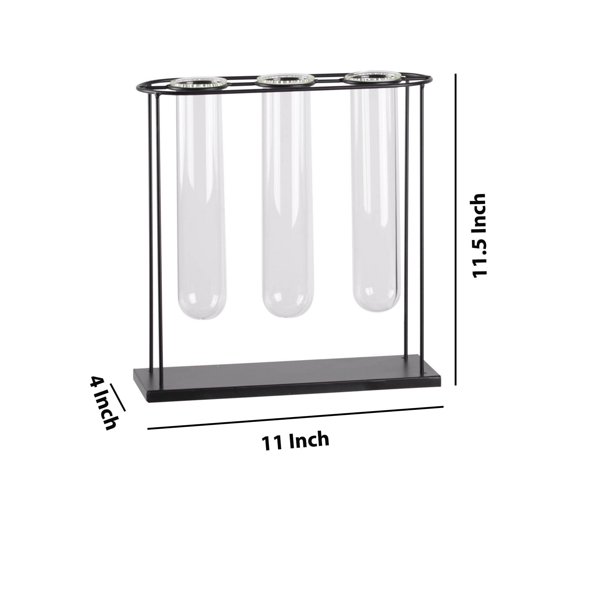 Metal Hanging Bud Vase Holder With 3 Glass Tubes On Flat Wood Base