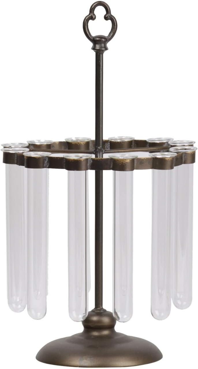 Benjara Bm219646 Round Metal Bud Vase Holder With 12 Hanging Glass