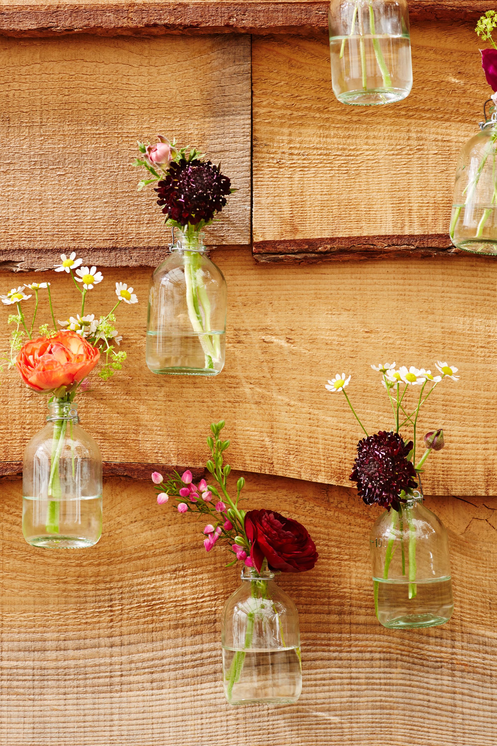 Glass Hanging Bud Vases Filled With Flowers Are The Perfect Touch