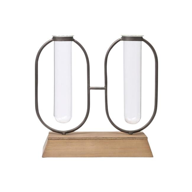 Metal Clustered Hanging Bud Vase Holder 5 Glass Tube Vases On Wood Base Brown Industrial Vases By Urban Trends Collection