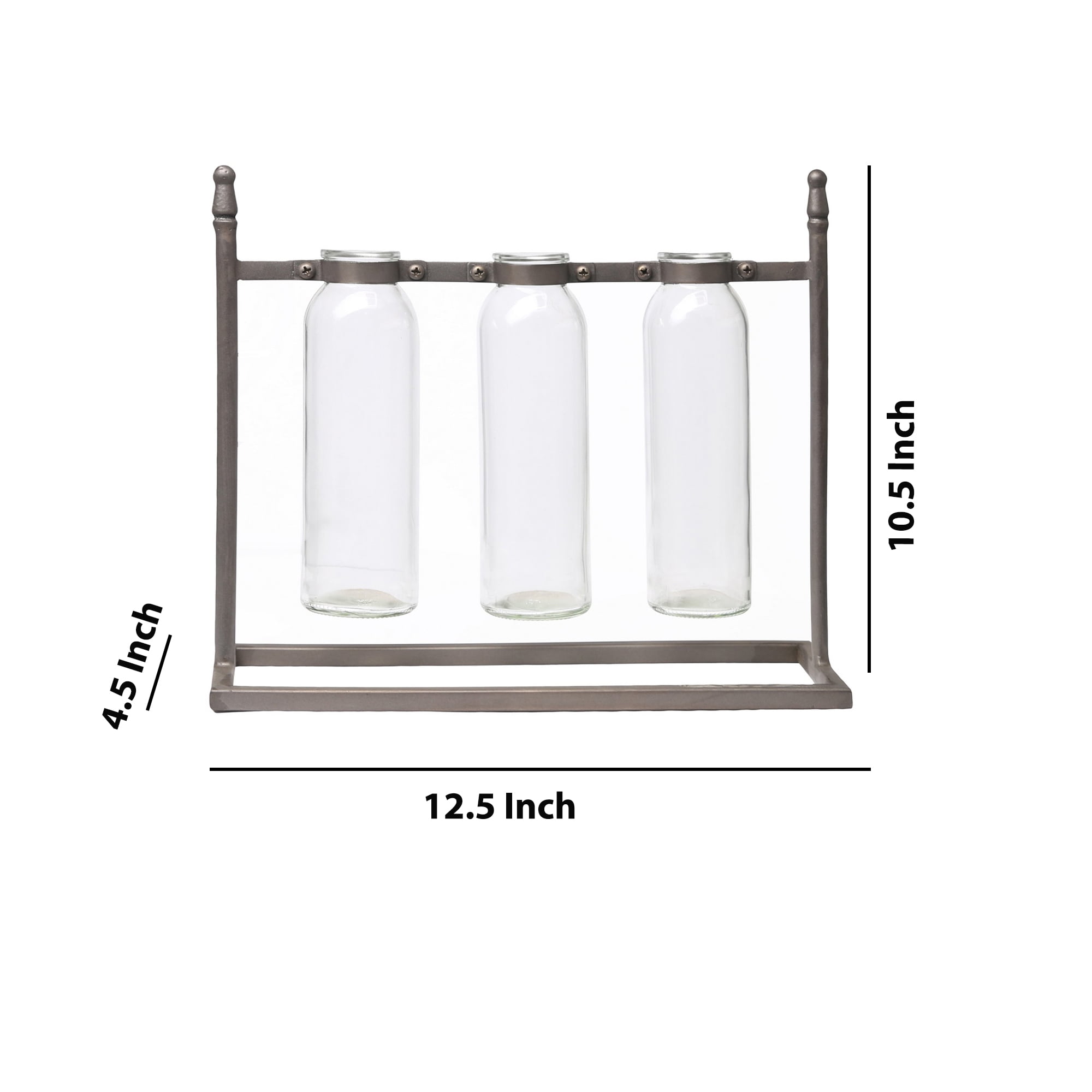 Benjara Bm219657 Rectangular Bud Vase Holder With 3 Hanging Glass Bottles 44 Copper Set Of 2 Walmart Com Walmart Com