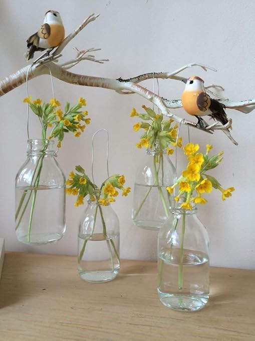 Amazon Com Homes On Trend Set Of Four Vintage Hanging Glass Bottles Small Mini Bud Vase Wedding Decoration Clear Height 9 5cms Home Kitchen