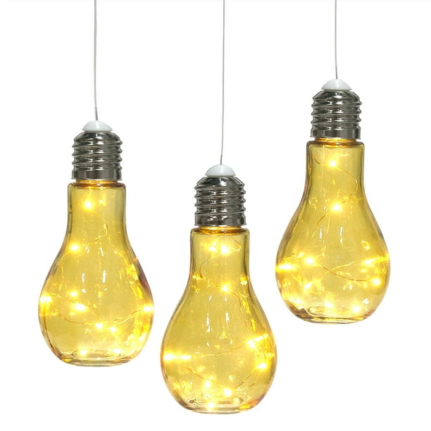 Set Of 3 Hanging Bulb Shaped Glass Lanterns Decorative Outdoor