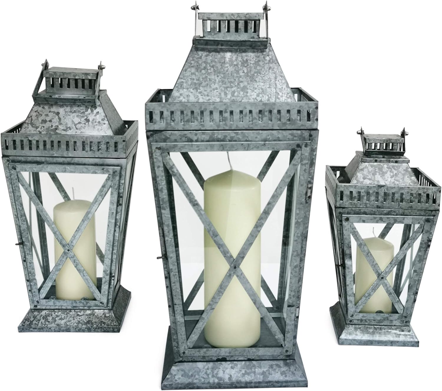 Metal Glass Lantern Victorian Style Galvanized Pillar Candle