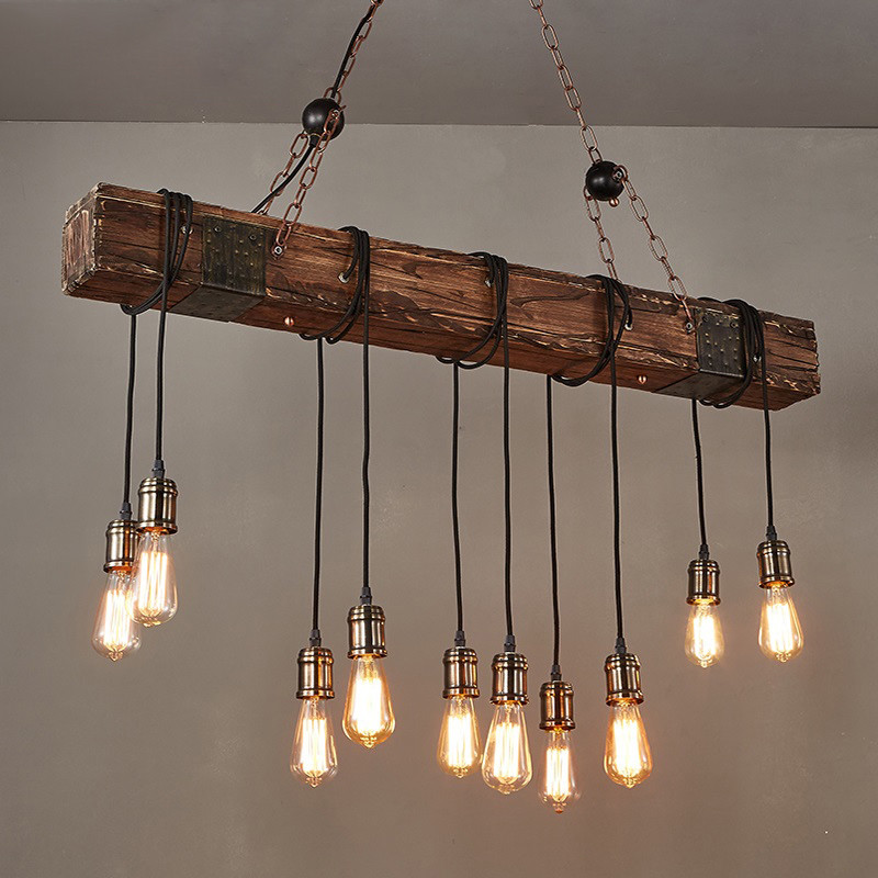 10 Lights Pendant Retro Farmhouse Wood Beam Island Hanging Bar