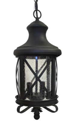 Large Exterior Hanging Lantern Textured Black Finish Plus Glass