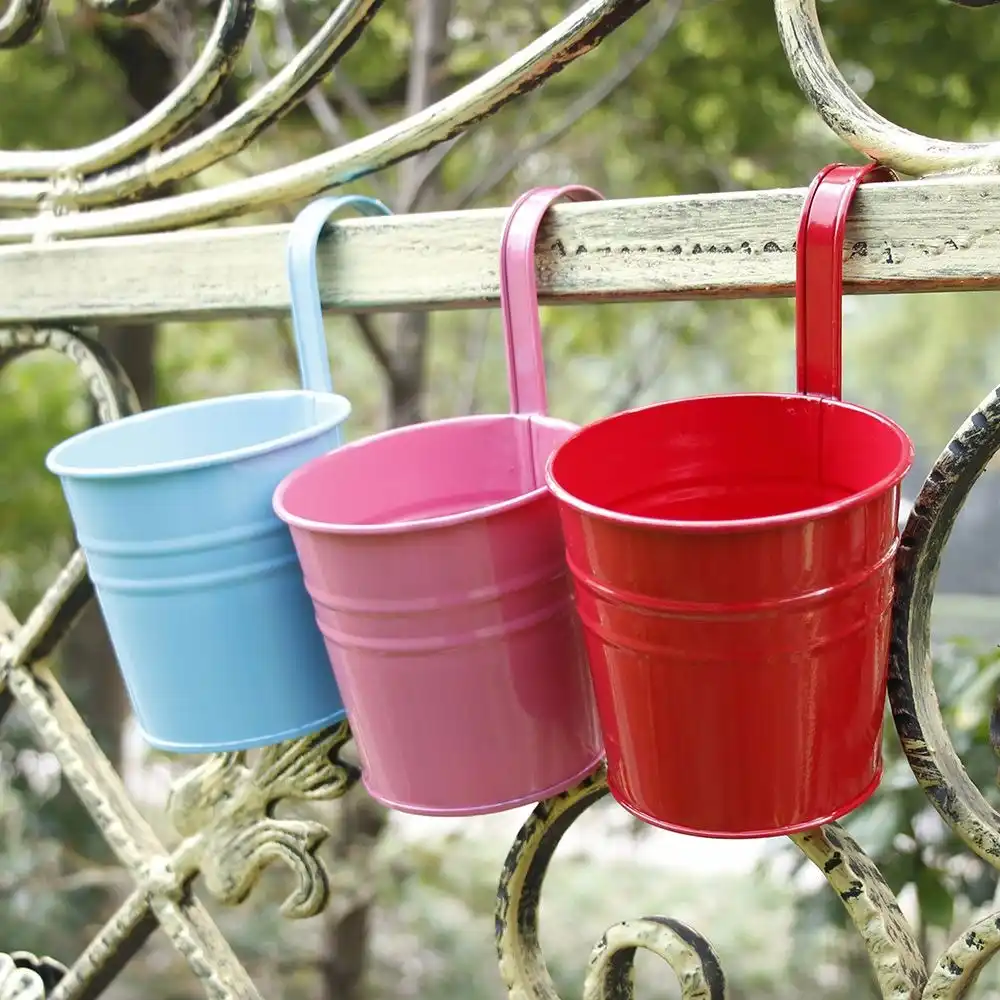 Delivery Mall Candy Colors Metal Flower Pots Hanging Flower Pot Garden Pots Balcony Planters Metal Bucket Flower Holders
