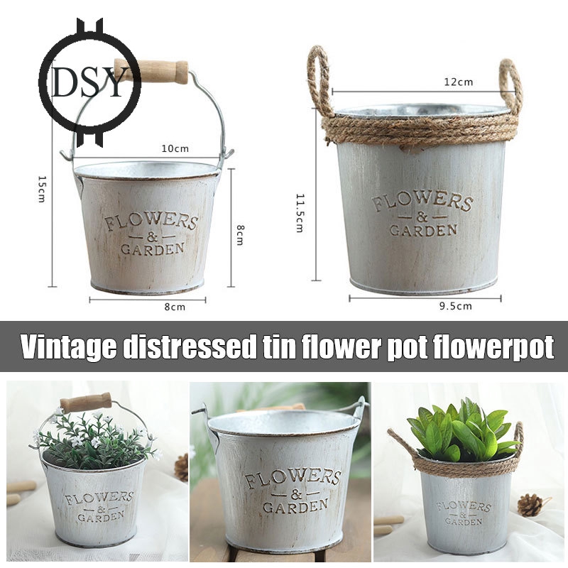Vintage Style Metal Bucket Hanging Flower Pot Durable Flower Plant Holder Home Garden Decoration Accessory Shopee Indonesia