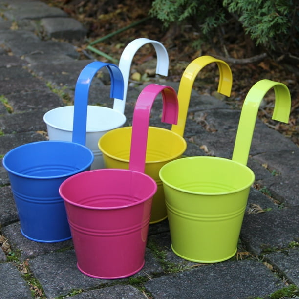 Wt 6pcs Metal Bucket Balcony Garden Pot Wall Hanging Plant Flower Holder With Hook Shopee Indonesia