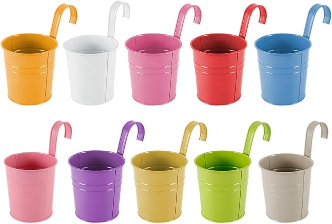Amazon Com Set Of 10 Garden Pots Hanging Buckets Metal Basket Bucket Planters Pot Assorted Colors Wall Mountable Multicolor With Removeable Handle For Plant And