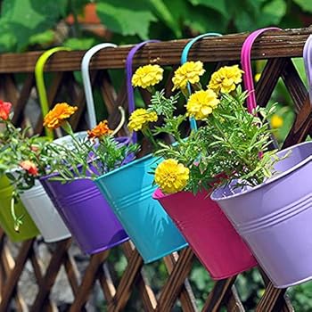 Amazon Com Cabilock 3pcs Metal Iron Hanging Flower Pot Vase Balcony Garden Plant Patio Planter Wall Hanging Metal Bucket Flowers Holders Home Decor Assorted Color