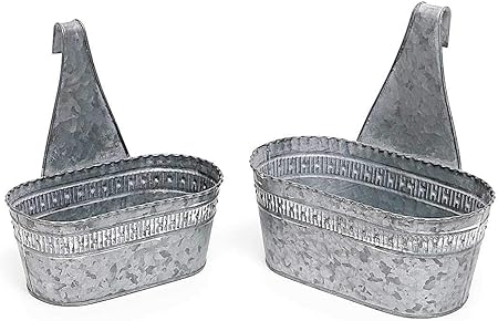 Amazon Com S 2 Oval Porch Fence Planters Hanging Galvanized Metal Bucket Container Organizer Plants Tools Flowers Succulent Distressed Indoor Outdoor 10 8 5