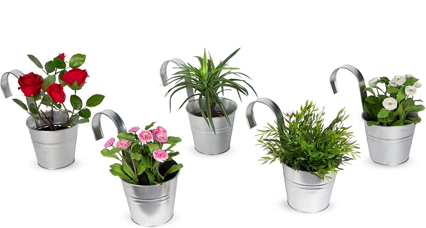 Amazon Com 10 Piece Large Metal Iron Hanging Flower Pots Garden Balcony Planters Wall Hanging Metal Bucket Flower Holders Garden Outdoor