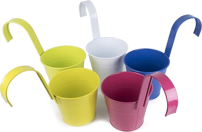 Amazon Com Brightmaison Large Hanging Metal Basket Bucket Planters Pot Set Of 5 Wall Mountable Set For Plant And Flower Multi Color Garden Outdoor
