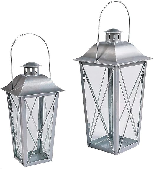 Shop Set Of 2 Silver Table Top Metal Lantern With Hanging Stands