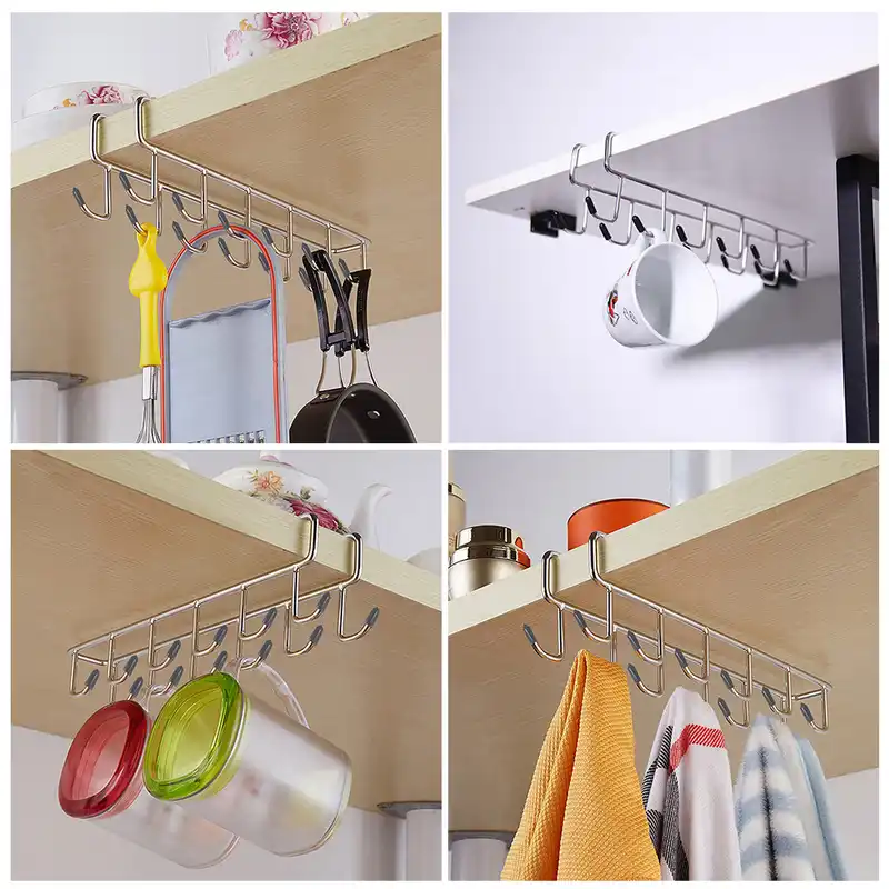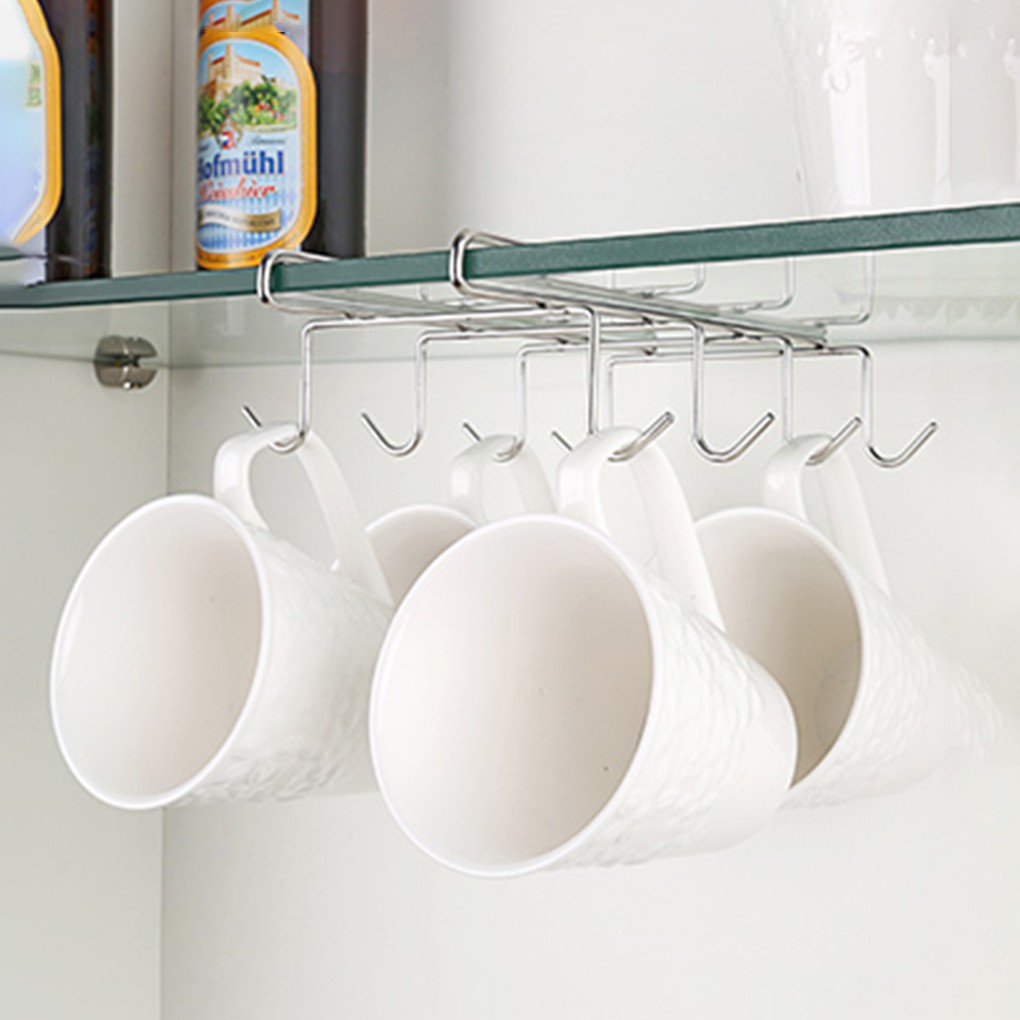 6 Hook Under The Shelf Mug Rack Kitchen Hanging Organizer Rack Mug