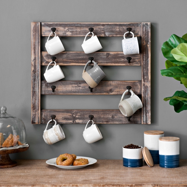 Rustic Wood Mug Rack With Hooks Kirklands