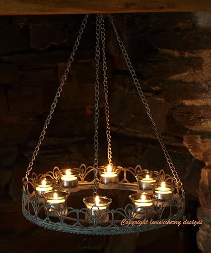 Amazon Com Outdoor Round Hanging Iron Candle Chandelier For Tea