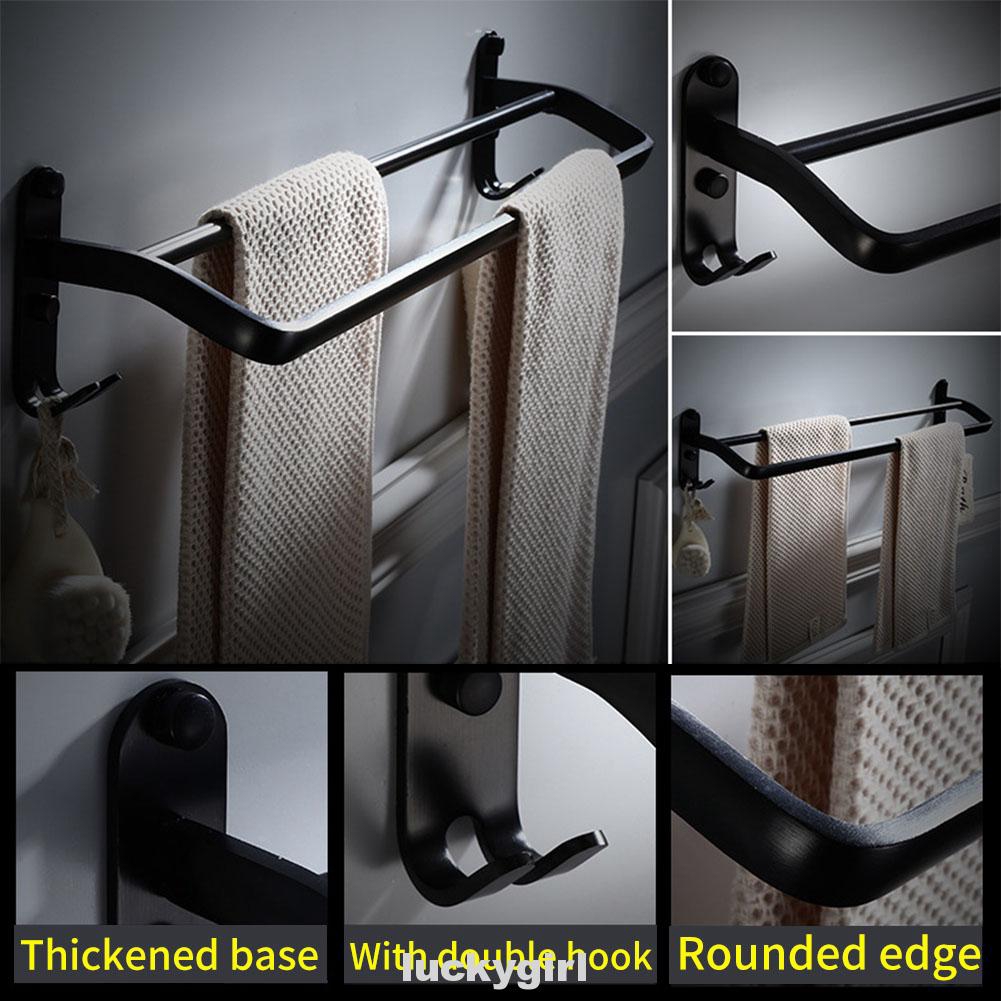 Wall Mounted Bathroom Towel Rack Hooks Space Aluminum Two Layer