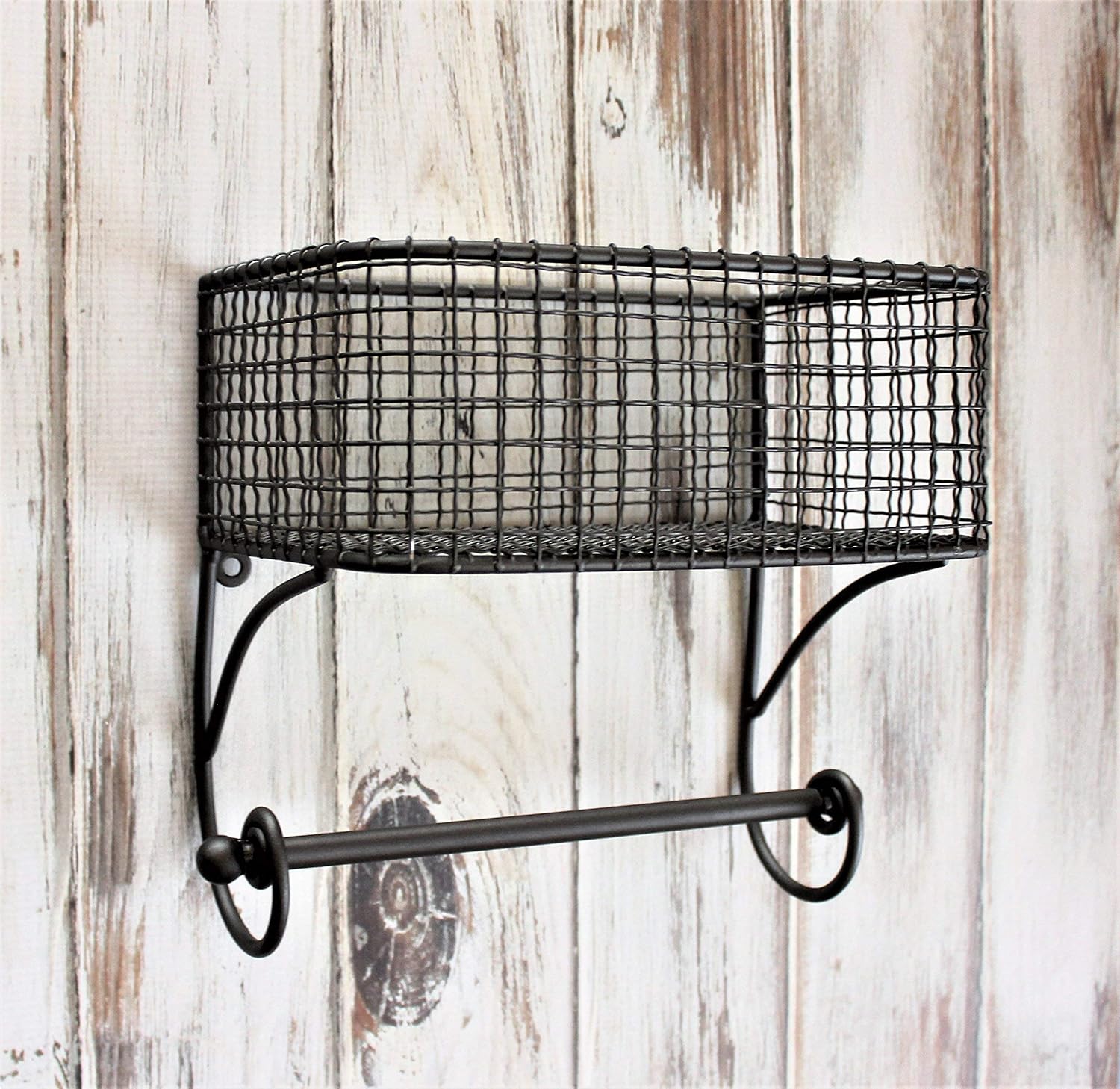 Kalalou Cq1024 Rustic Iron Hanging Towel Rack W Basket