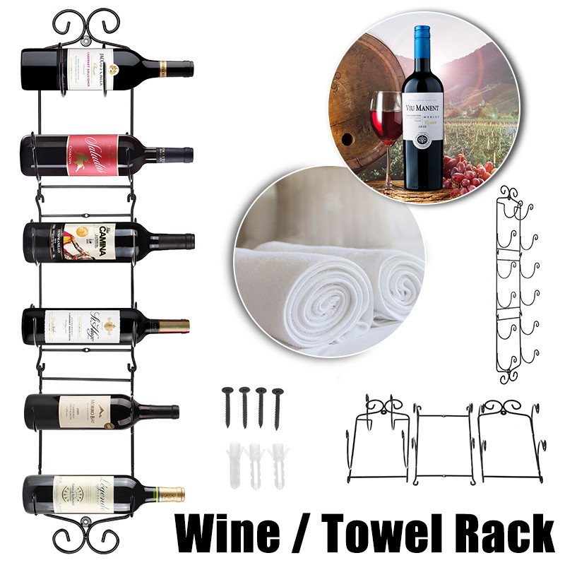 Wall Hanging Wine Rack Bottle Holder Storage Mount Towel Metal