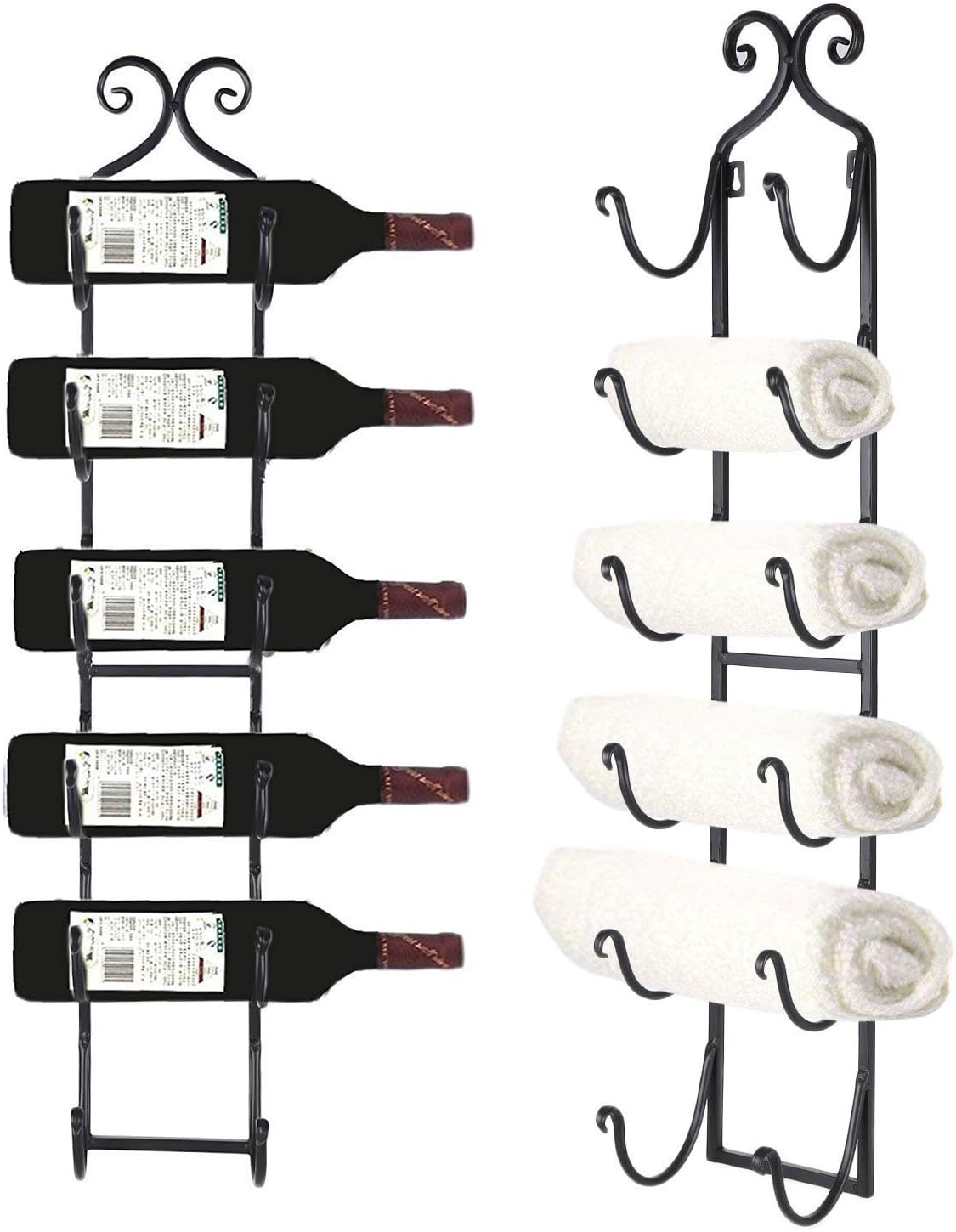 Premium Presents Wall Mount Towel Wine Rack Holder Metal Hanging