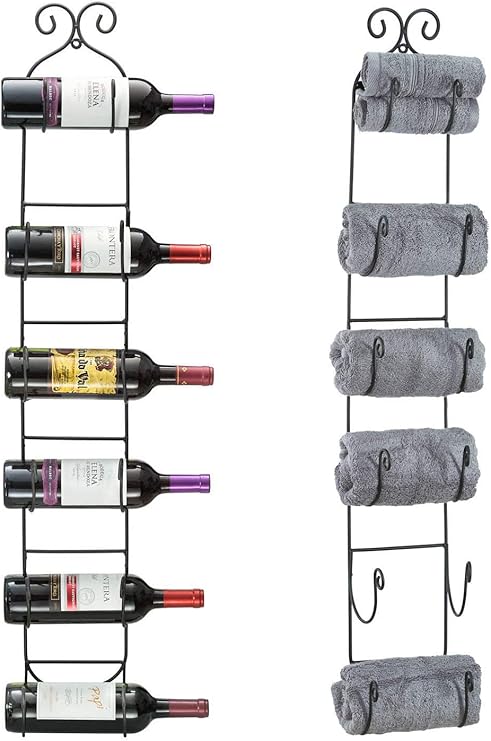Wine Rack Wall Mount Bath Towel Holder Bottles Storage Hanging