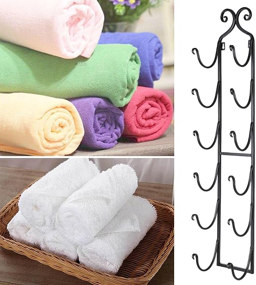 Kemanner Wall Mount Towel Rack Black Wrought Iron Hanging Wine
