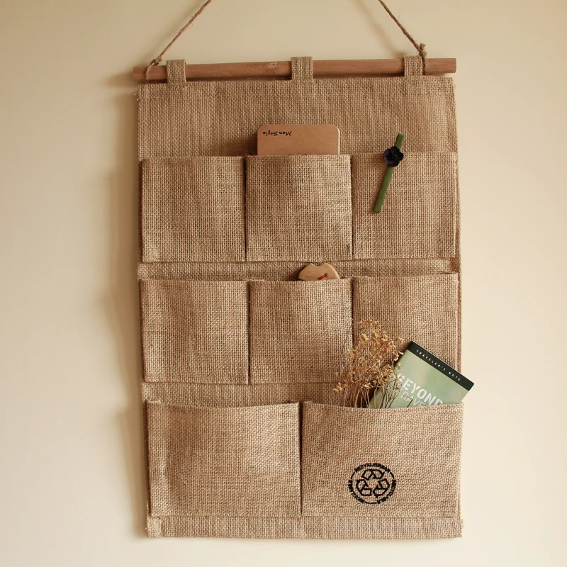 Vintage Waterproof 7 Pockets Organizer Jute Naturally Letters Wall