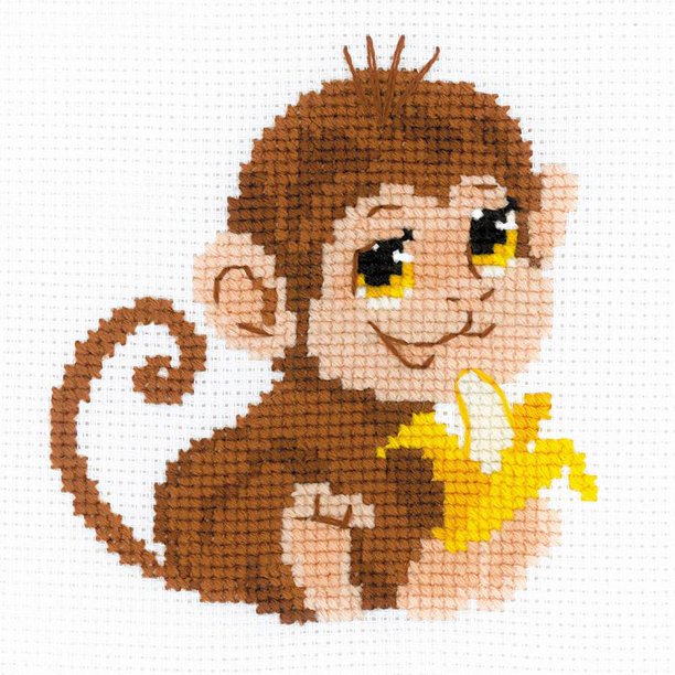 Monkey Counted Cross Stitch Kit 6 X 6 10 Count Walmart Com