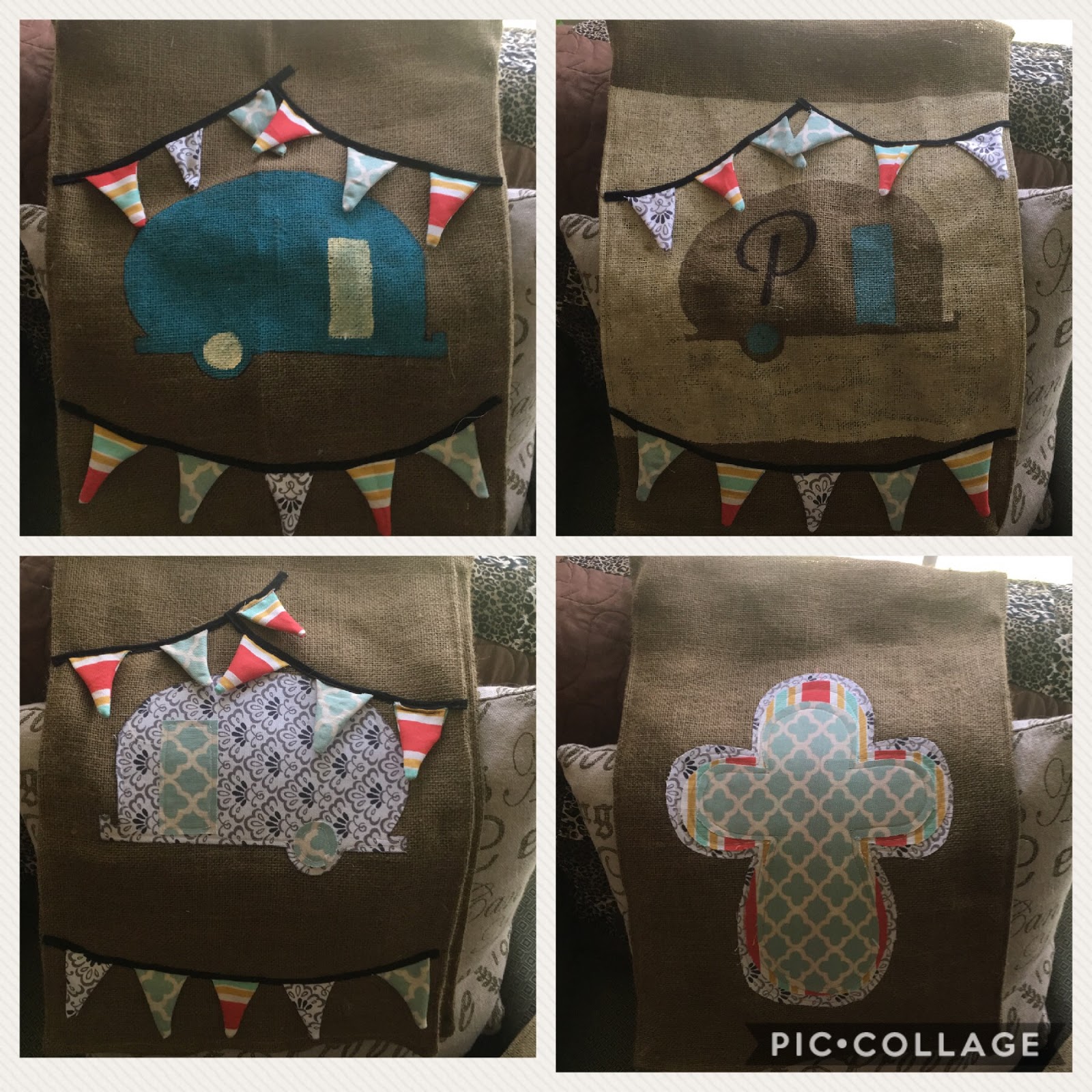 Flag Happy Camper Burlap Background School Colors Choose Etsy