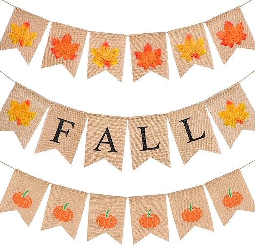 Amazon Com Tatuo Thanksgiving Happy Fall Pumpkin Burlap Banner 3