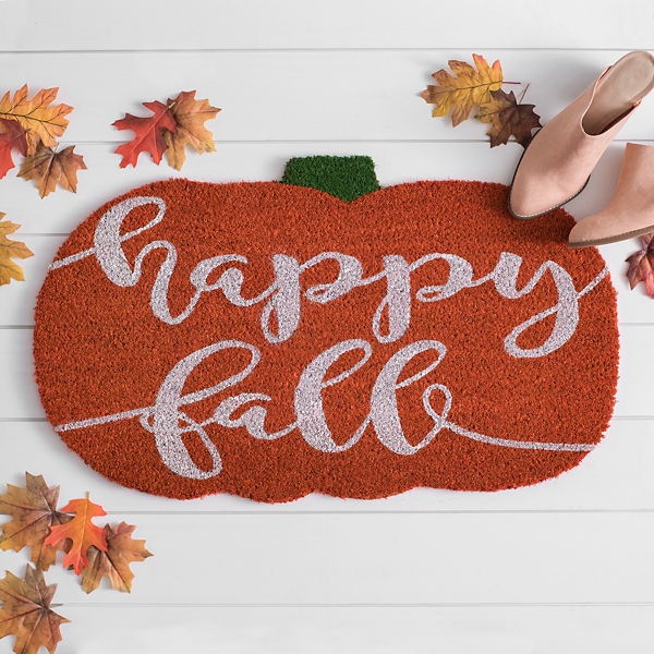 Happy Fall Pumpkin Shaped Doormat Kirklands