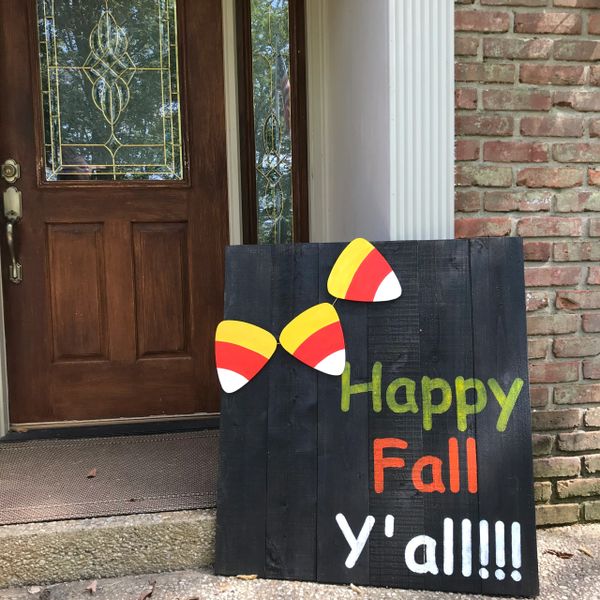Happy fall yall porch sign i happy fall sign i fall sign i fall i fall decor i happy fall yall i autumn i fall porch sign i harvest pixiedustlouisville. This wood sign has been stained then painted a distressed black with the letters hand painted in white and harvest gold. 5 out of 5 stars 1126 1126 reviews 3600 free shipping favorite add to happy fall yall metal signs. Colorful leaves are added and the sign is topped off with an orange.