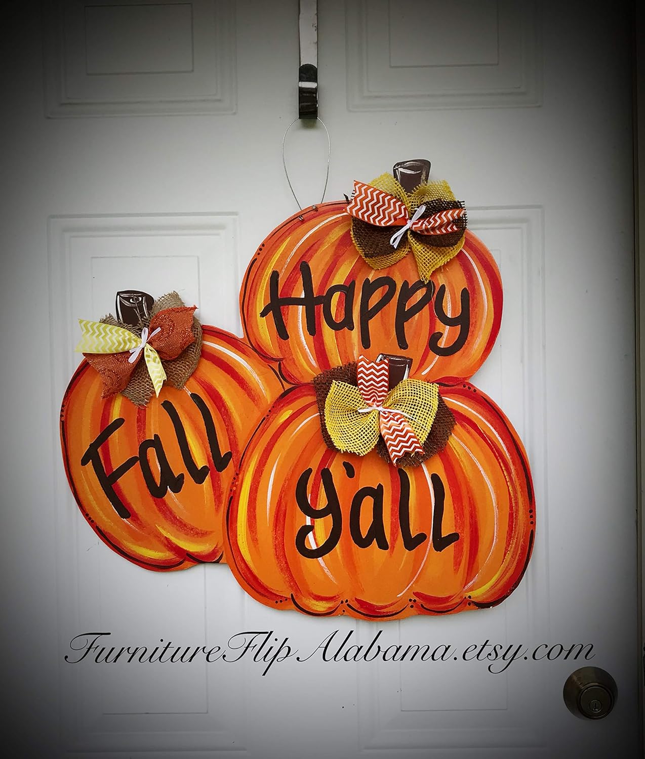 Amazon Com Happy Fall Yall Pumpkin Door Hanger Stacked Pumpkin