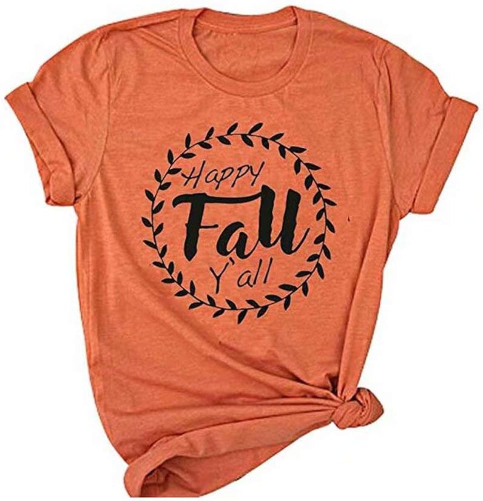 Happy Fall Y All Shirt Women Halloween T Shirt Casual Short Sleeve