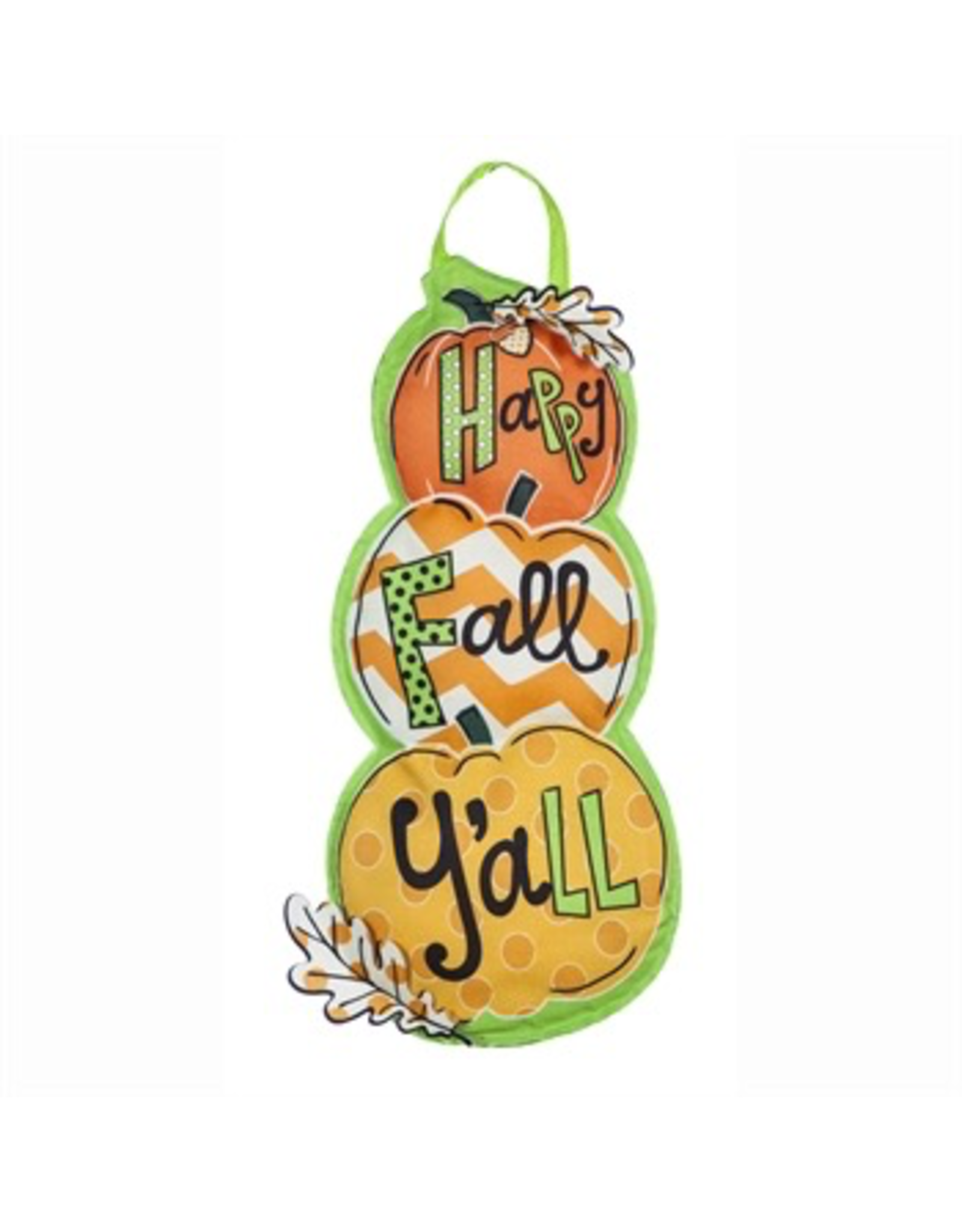 Happy Fall Y All Orange Pumpkin Door Hanger