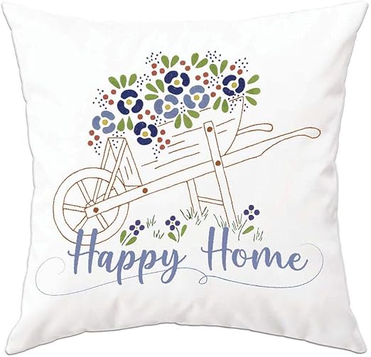 Amazon Com Herrschners Happy Home Pillow Cover Stamped Embroidery Kit