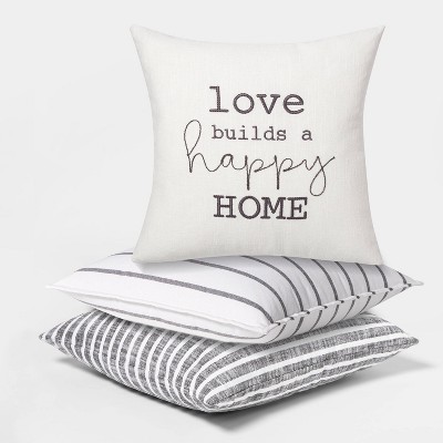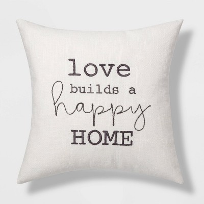 Square Love Builds A Happy Home Embroidered Pillow Cream Gray