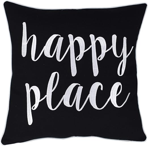 Amazon Com Adecor Happy Place Embroidered Quote Black Decorative