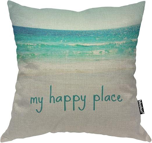 Amazon Com Moslion Throw Pillow Cover My Happy Place 18x18 Inch