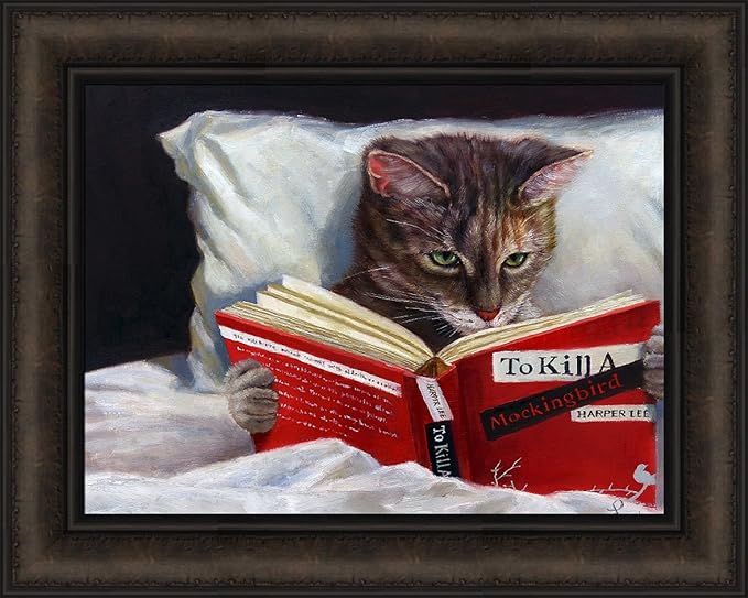 Amazon Com Home Cabin Decor Late Night Thriller By Lucia Heffernan 16x20 Humorous Funny Art Cat Reading Book Kitten Kitty Framed Print Picture Posters Prints
