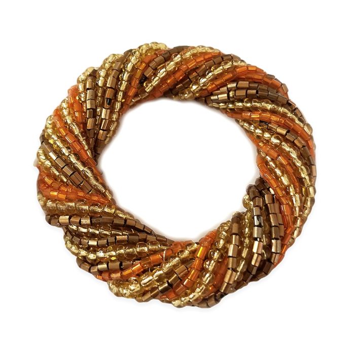 Lot Of 4 Brown Tan Clear Beaded Harvest Holiday Napkin Ring