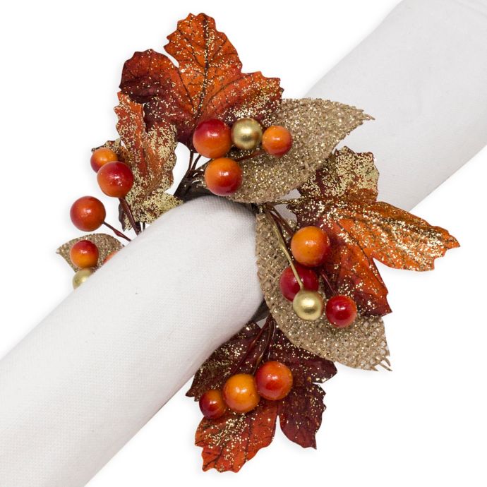 Sparkle Foliage Harvest Napkin Rings Set Of 4 Bed Bath Beyond