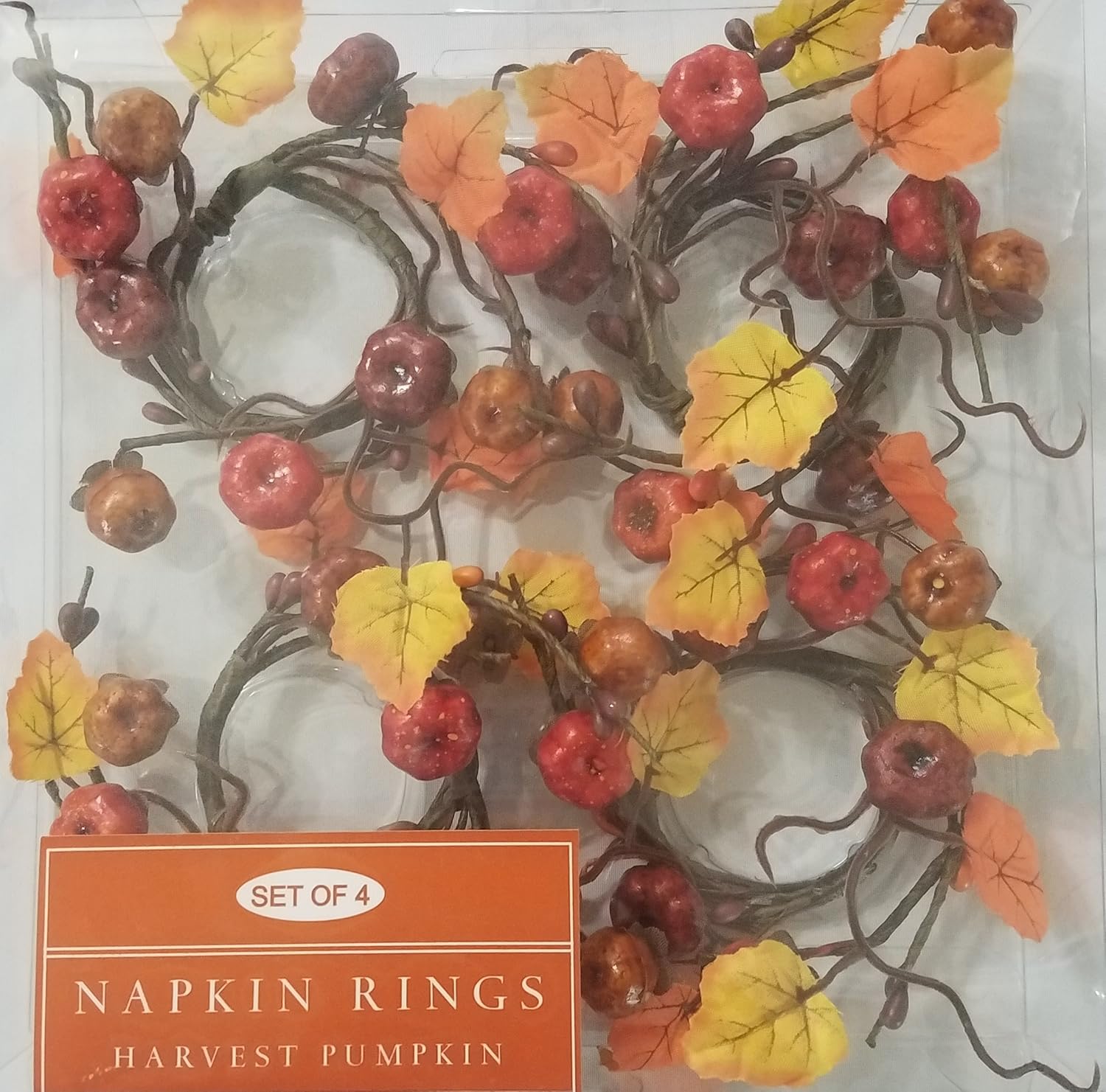 Harvest Pumpkin Leaves Vine Design Set Of 4 Napkin Rings Formtech