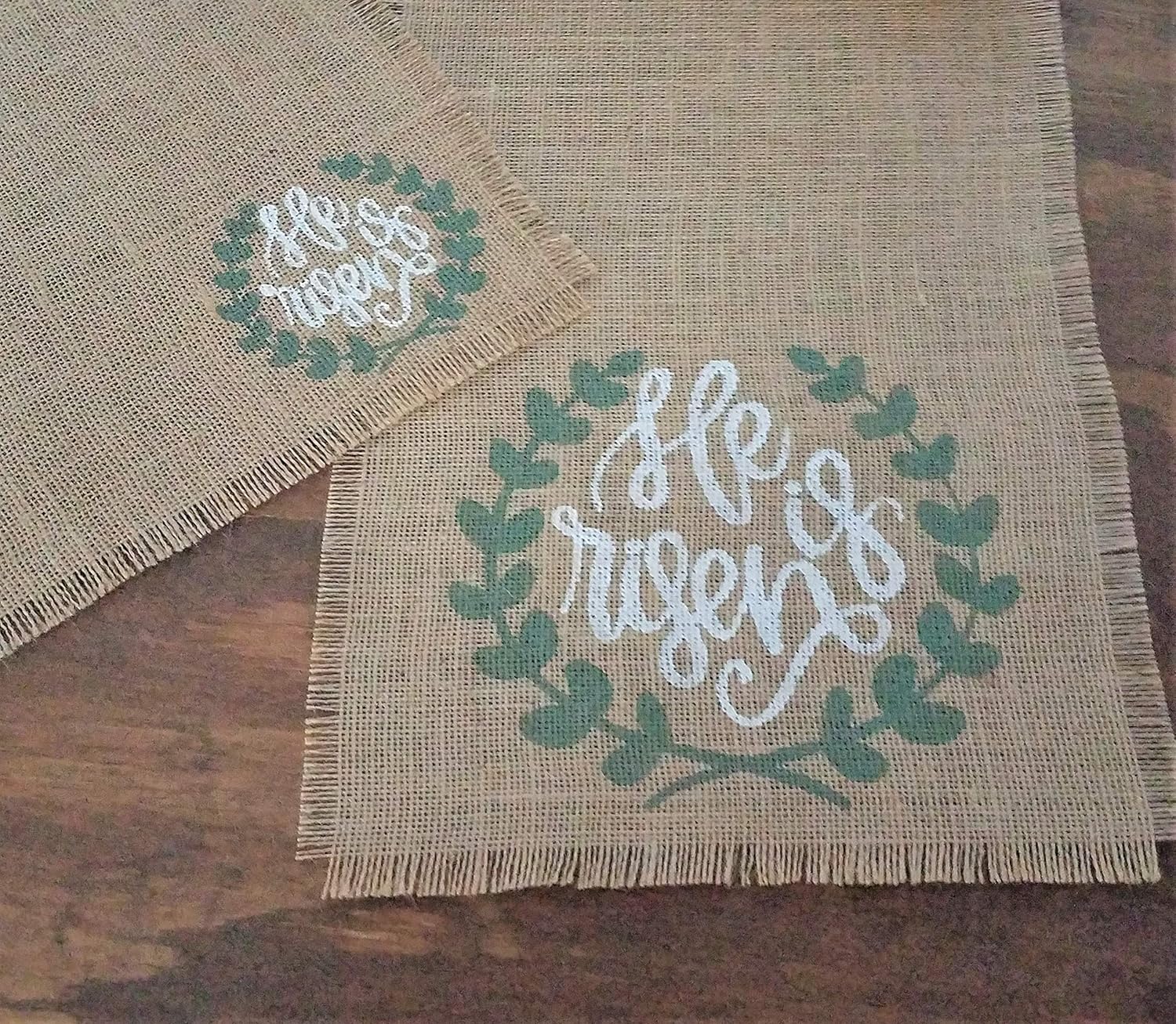 Amazon Com Burlap He Is Risen Table Runner And Placemats Set Of 2