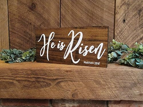 Amazon Com He Is Risen Easter Sign Matthew 28 6 Farmhouse Home Decor Rustic Wall Decor Bible Verse Sign Hand Painted Handmade