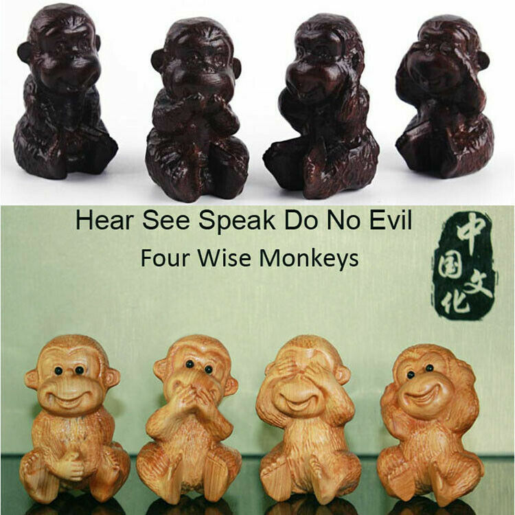 6cm Wood Figurine Four Wise Monkeys Hear See Speak Do No Evil