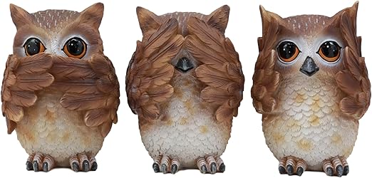3 Owl Figurines Hear No Evil Speak No Evil See No Evil Aimisa